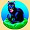 - Schwarze Katze auf grünem Kissen