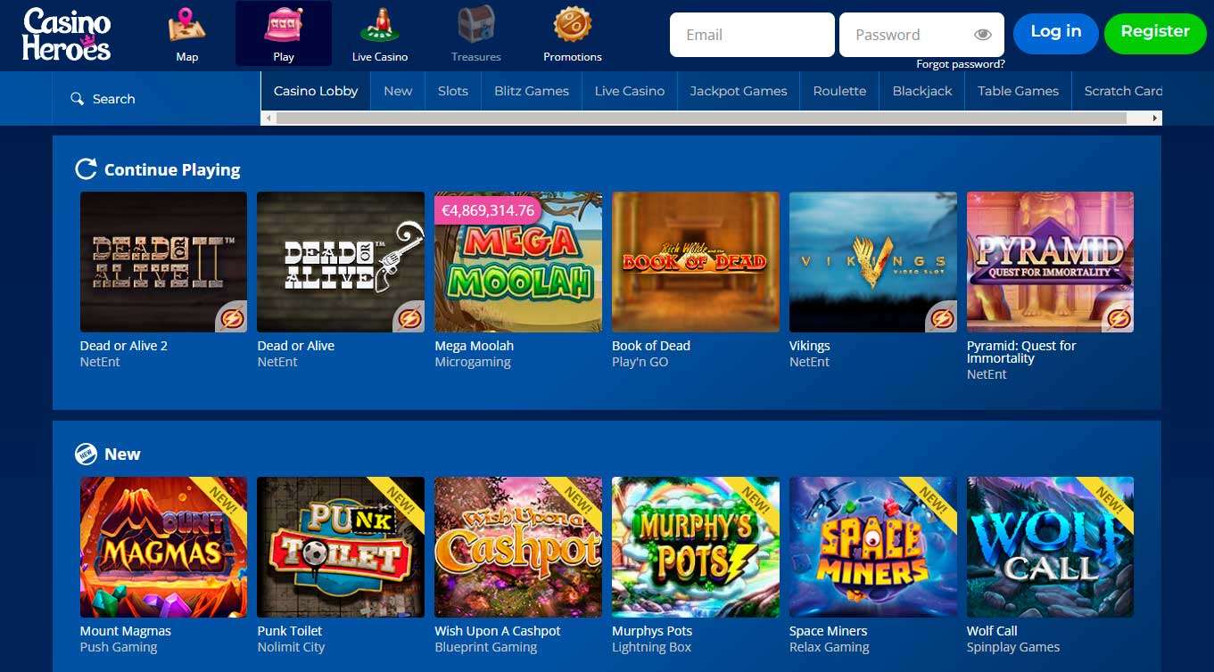 Die Spielautomaten sind die mit Abstand größte Gruppe und neben den bereits erwähnten Blitz-Spielen von NetEnt gibt es noch ein weiteres Highlight in der Kategorie der Slots, welches man sich unbedingt näher anschauen sollte. Casino Heroes besitzt eine herausragend große Anzahl an sogenannten Jackpot Slots, die nicht selten einen siebenstelligen Betrag angehäuft haben und darauf warten, einen glücklichen Spieler zum Millionär zu machen.